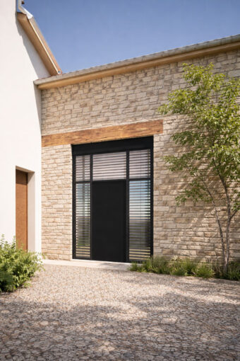 Ce projet implique une réorganisation complète des espaces afin de distinguer clairement les fonctions d’habitation et d’activité professionnelle. Un nouveau caveau de dégustation est ainsi aménagé dans un ancien espace de stockage, complété par une arrière-cuisine et un sanitaire. Une ouverture est créée en façade pour marquer l’entrée dédiée à l’accueil des clients. Le bureau prend place au rez-de-chaussée, dans l’ancien caveau, tandis que le reste de la maison est repensé pour répondre aux besoins de la vie familiale.